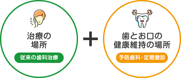 おおた歯科医院には、「歯とお口の健康維持の受け皿」と「治療の受け皿」の2つのシステムが存在します。